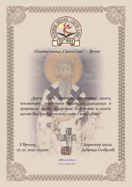 Огласна табла Честитка директора 27. јануар 2022. Post navigation Previous: Школски час посвећен Светом СавиNext: Приредба и школски часопис за Светог Саву 2022. године