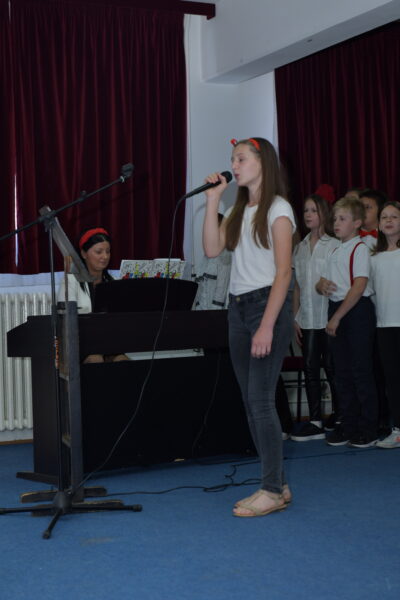 После велике паузе изазване пандемијом вируса короне ово је прва приредба уживо пред публиком и први наступ уживо нашег хора којим руководи наставница музичке културе Мила Ђачић.