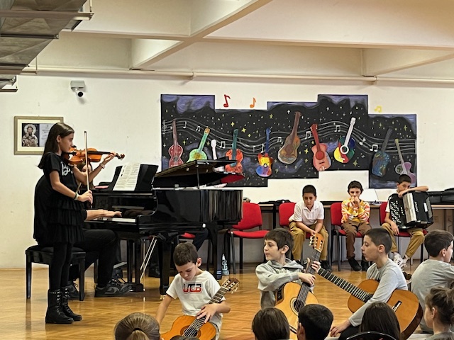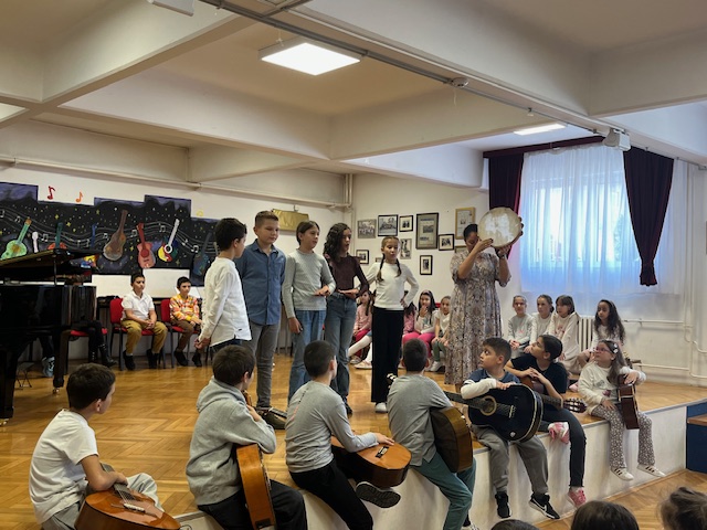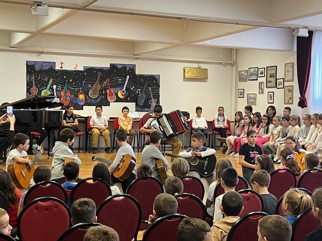 У оквиру обележавања Дечије недеље, наша школа имала је част да угости ученике и наставнике Основне музичке школе „Невена Поповић“, који су у петак 10. 10. 2025. одржали интерактивни концерт за ученике од првог до четвртог разреда.