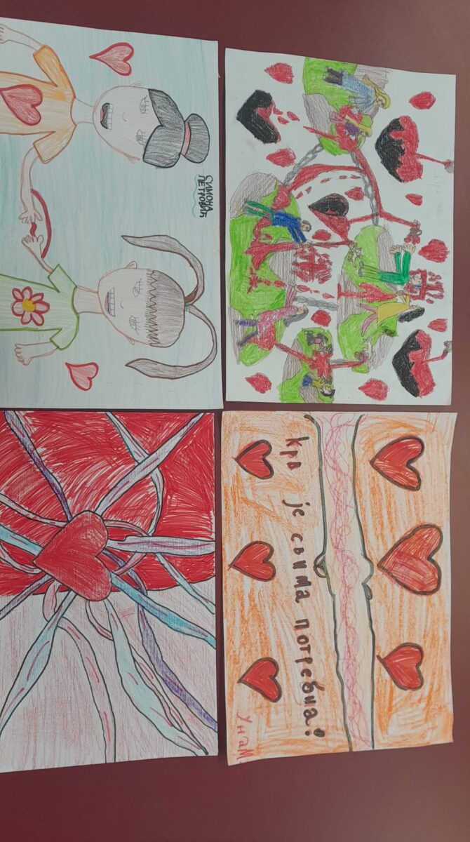 Ученици нижих разреда изражавали су своје идеје кроз ликовне радове на тему значаја даривања крви и помоћи другима, уз поруке које промовишу добровољно давалаштво крви. Током реализације активности, ученици су разговарали о томе колико је свака кап крви драгоцена и како свако од нас може допринети спашавању живота. Ликовни радови показали су изузетну креативност и емпатију ученика.
