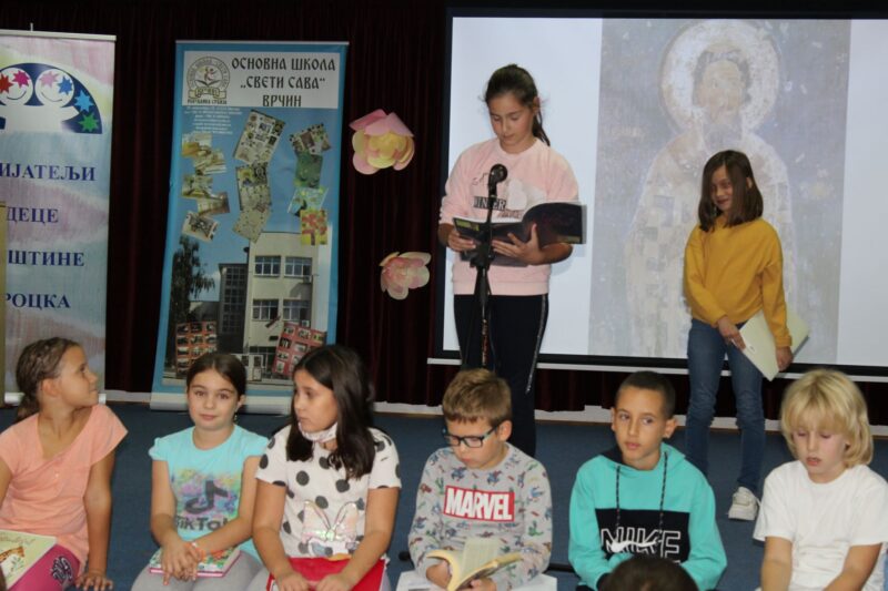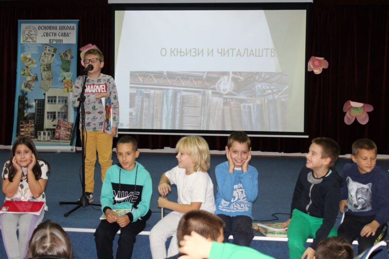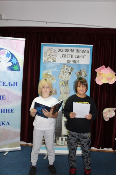 Ученици трећег разреда читали су своје саставе.Свечана сала наше школе била је савршено местo да ученици покажу своје умеће у писању. Могли су и да виде свеске својих другова изложених у сали као примере лепог писања. Час је реализован у сарадњи са школском библиотекарком Снежаном Теофиловић.