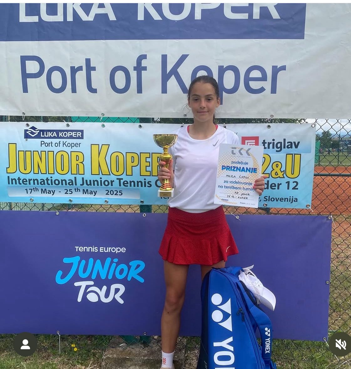 Милица Ћапин, талентована тенисерка из наше школе, остварила је изванредан успех на међународној сцени. На престижном турниру „Tennis Europe“ – категорија 1, до 12 година, у Копру, Милица је освојила 1. место у синглу и 2. место у дублу, потврдивши свој изузетан таленат и рад.