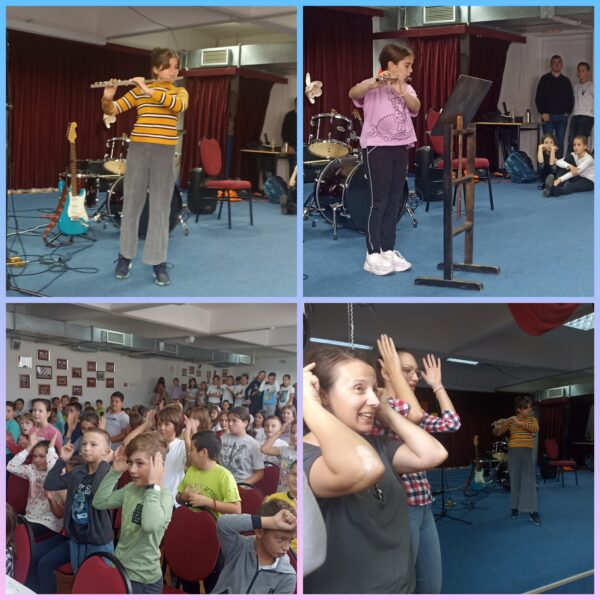 Ученици су се вредно припремали да би својим другарима представили себе и своје инструменте у најбољем светлу. Данас смо заједно певали, ђускали, забављали се и уживали у музици, а то је најлепши начин да прославимо Дечију недељу!