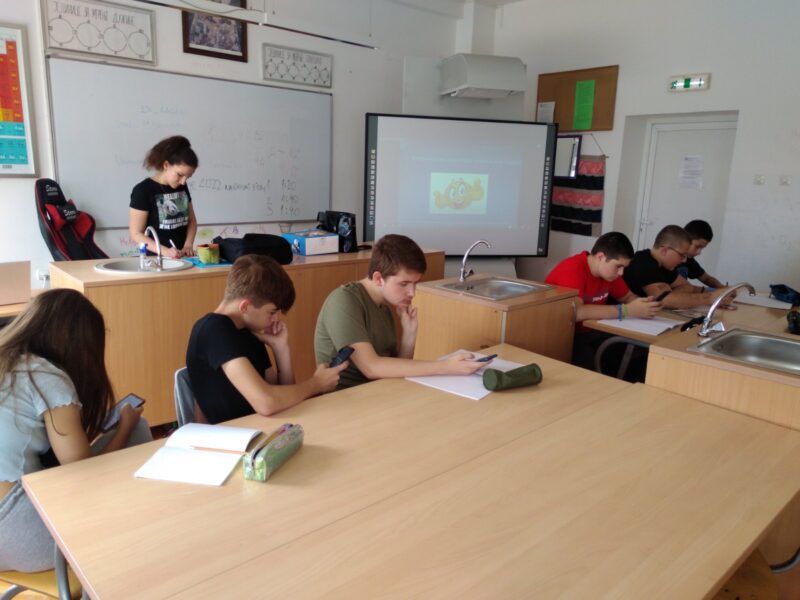 На часовима  хемије је у првој недељи јуна месеца2022.године спроведен педагошки експеримент са ученицима седмог разреда. Одељења 7-1 и 7-2 судобилаинструкцију о асинхроном, групном, онлајн учењу код куће путем наставних филмова. Ученици из одељења 7-3 су на часовима хемије у групама учили о истом наставном садржају путем наставних филмова. Ови нови приступи у настави су примењени за обнављање наставног садржаја из области раствора. Показали су се јако интересантнисвим ученицима. Ефекти примењених приступа ће бити испитани након обраде података добијених од ученика наше и дванаест других школа у Србији.
