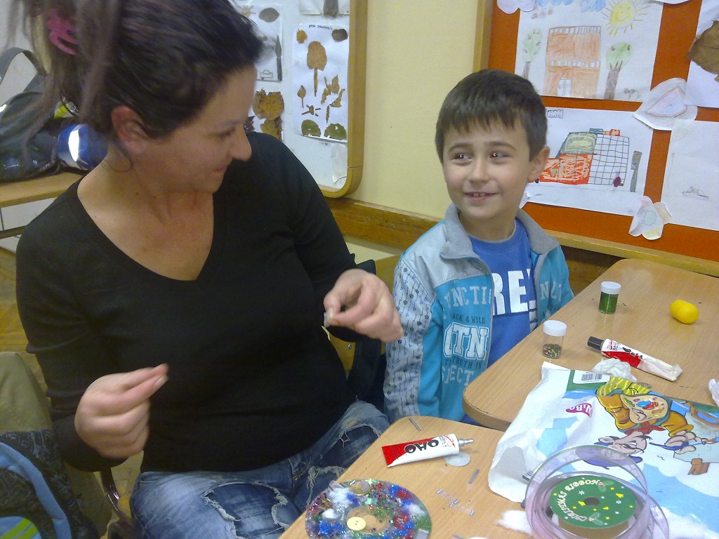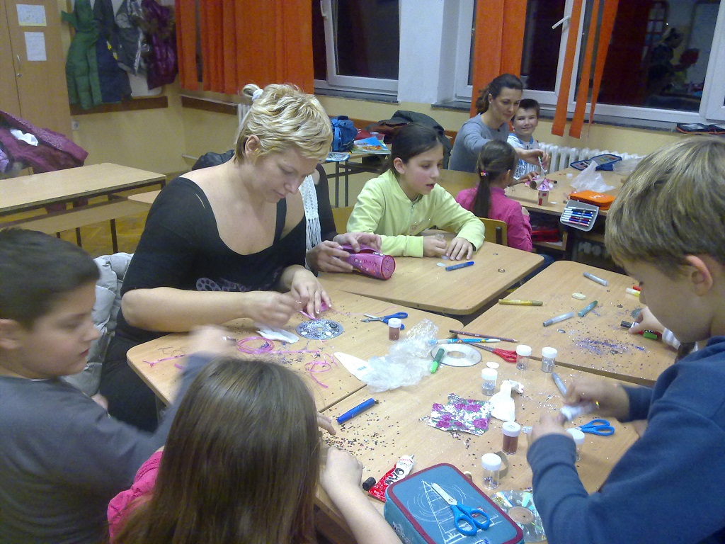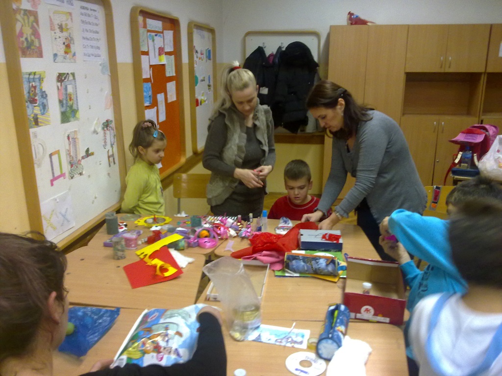Децембар месец нам доноси многе обавезе и задовољства – ближи се крај 1. полугодишта, планови за распуст се кују, новогодишњи празници куцају на врата, … Ученици 1/3 су имали задовољство да на часу ликовне културе угосте родитеље и да заједно кроз радионицу праве украсе за јелку од старих дискова, дугмића, ваљкастих картона, итд. Идеја је била да ученици схвате значај рециклаже кроз поруку „Рециклажа није бламажа“.