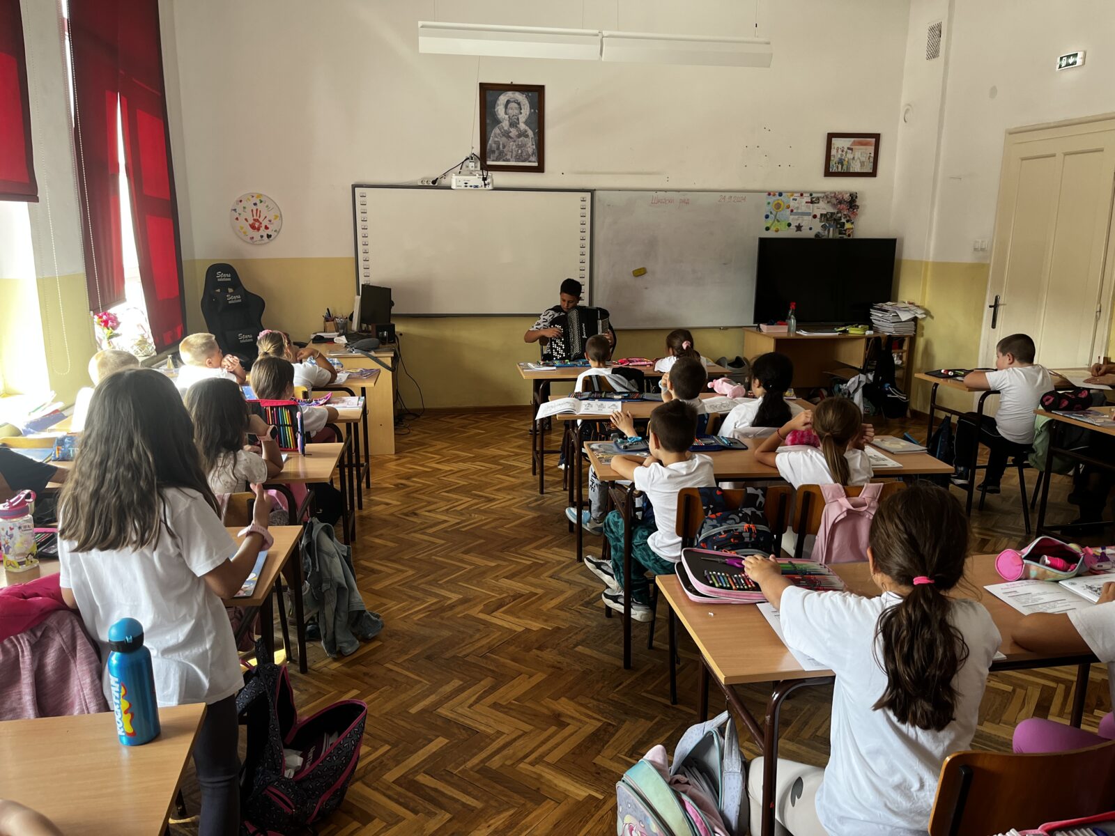 У уторак 23.9.2024. г. бивши ученик, Митар Марковић, посетио је своју учитељицу, Ану Синђелић, у школи где је некада учио. Донео је осмех на лице свих присутних када је из торбе извукао хармонику. Док је седео пред млађим ученицима, почео је да свира мелодије које су их одмах повеле у свет музике. Ученици II/3 су пажљиво слушали, а у неким тренуцима певали и играли у ритму. Митар им је објаснио како свирање хармонике може да буде као прича – свака нота има своју улогу, а заједно стварају уметност музике. Часу је присуствовала и наставница веронауке Биљана Николић, која је својим присуством и гласом улепшала сваку песму.