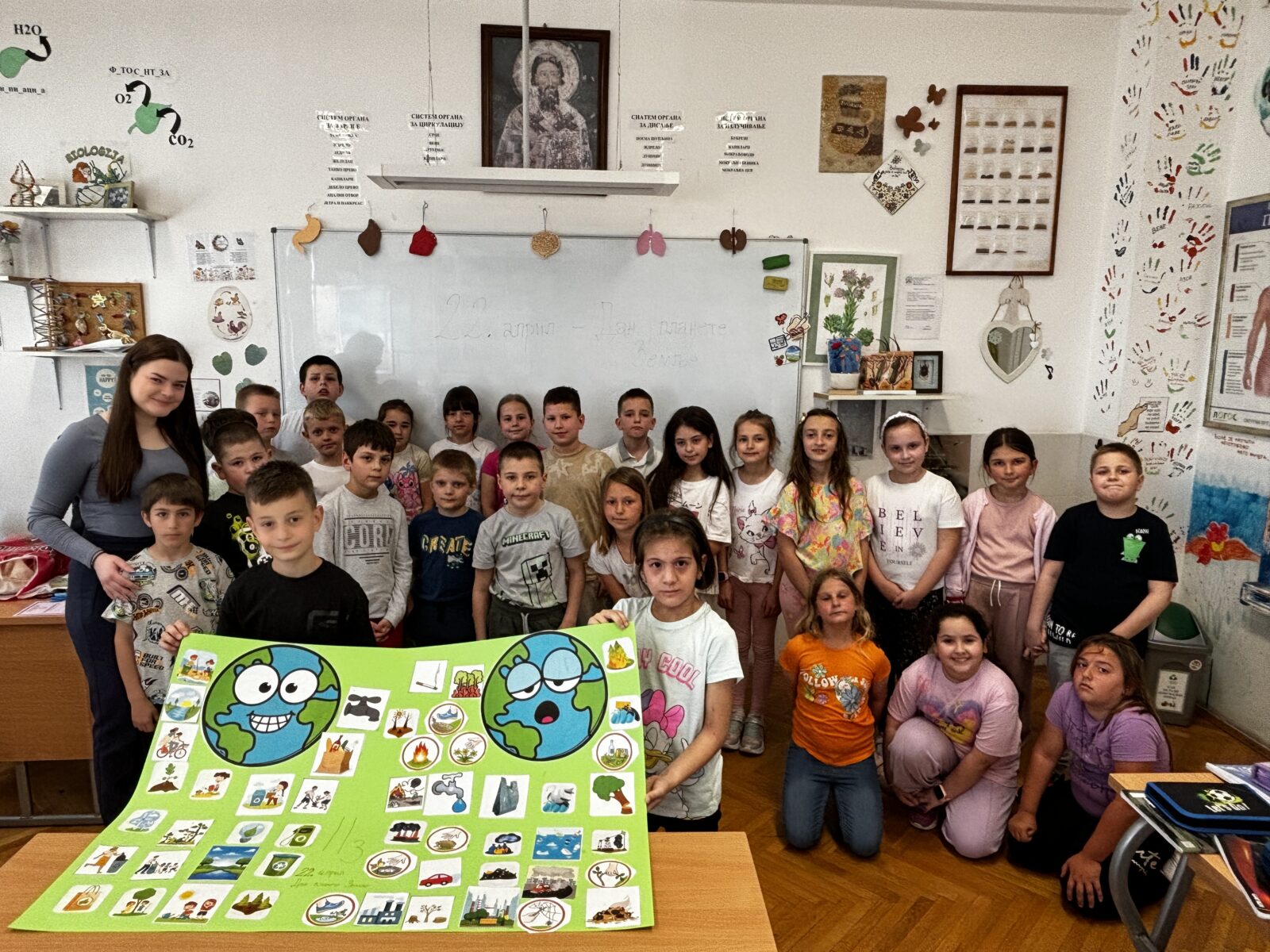 Дана 22. априла 2025. године одржани су огледни часови из биологије и хемије. Наставница биологије Анђелка Стојиљковић реализовала је овај час у сарадњи са наставницом биологије Владaнком Лазаревић. На часу су учествовали ученици другог разреда који су кроз разноврсне активности учили о значају очувања наше планете Земље. Ученици су у кабинет биологије дошли у пратњи учитељице Ане Синђелић.