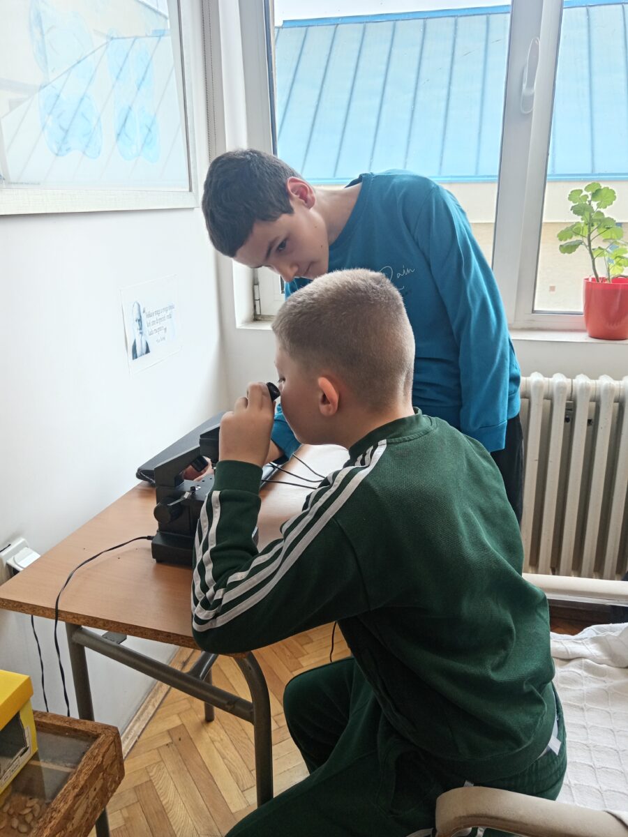 Четвртаци су 27. марта посетили биолошки кабинет у пратњи учитељице Мирјане Јашић. Тема часа била је „Делови биљке“, а час су водиле наставнице биологије Владанка Лазаревић и Анђелка Стојиљковић. Ученици су имали прилику да истраже делове биљке на природном материјалу, гледају их под лупом, као и да посматрају под микроскопом. Такође, научили су како се изолује хлорофил из биљака. Деца су понела своје цветове, плодове и семена, које су анализирали током часа. Часу су присуствовале и стручне сараднице Ана Матејић и Драгана Младеновић. Са радошћу се радујемо петом разреду и новим изазовима у учењу биологије.