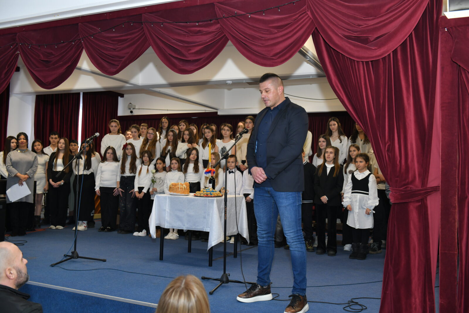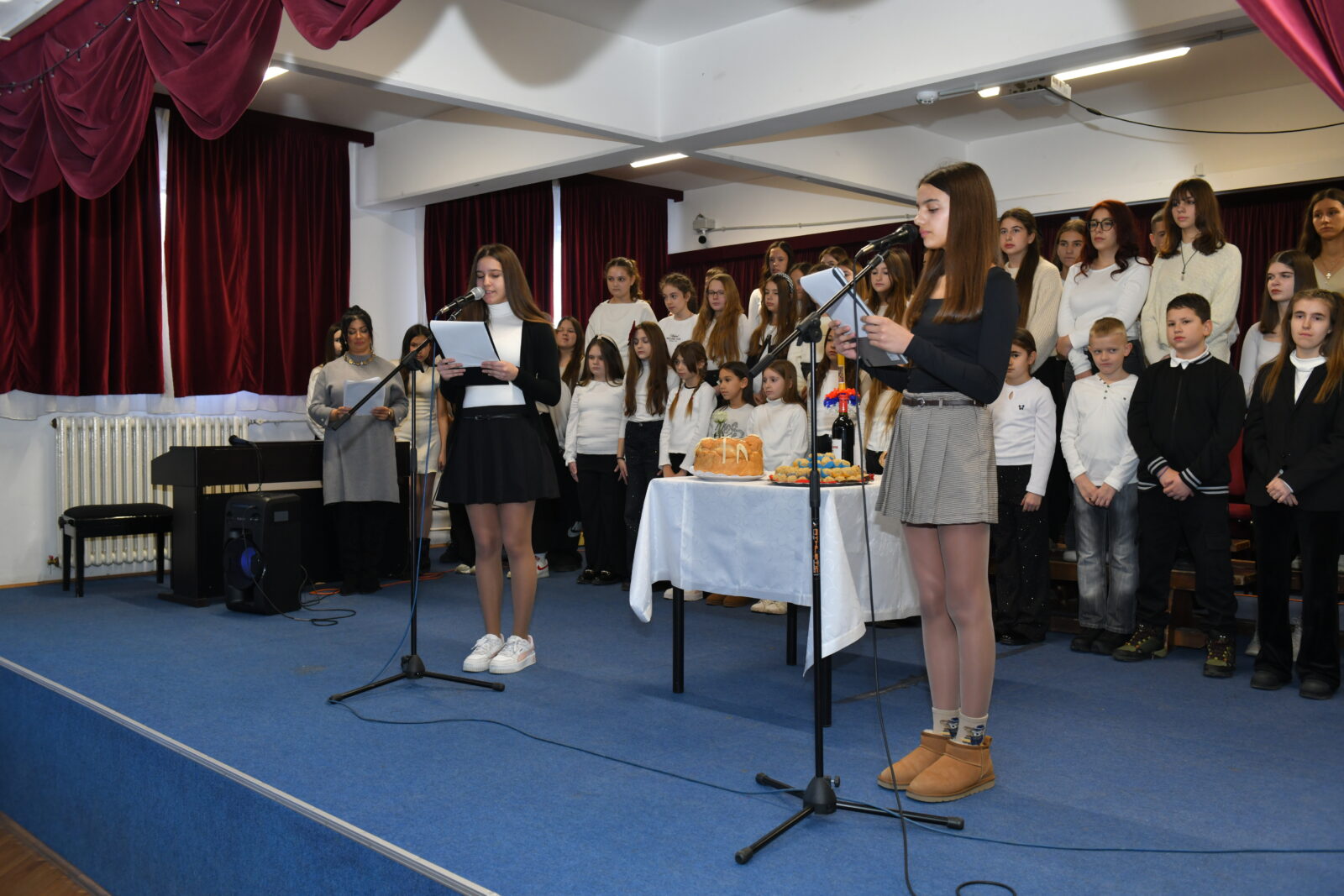 - јануара 2026. године окупили смо се на литургији, а затим и у школи, да дочекамо нашу славу у миру и у сећању на Добрицу Синђелића и сва његова добра дела и заслуге, одавши му минутом ћутања, почаст на почетку приредбе. Данашњу прославу прилагодили смо тишини која је у нашим срцима, а са нама ће нашим заједничким стазама наставити и уз све нас бити и господин Тихомир Костадиновић, вршилац дужности директора школе, који се на почетку програма обратио присутнима, захвалио родитељима на подршци и ученицима на додатном ангажовању, жељи и мотивацији да учествују у реализацији приредбе, након чега смо приступили резању славског колача са нашим парохијским свештеником оцем Димитирјем.