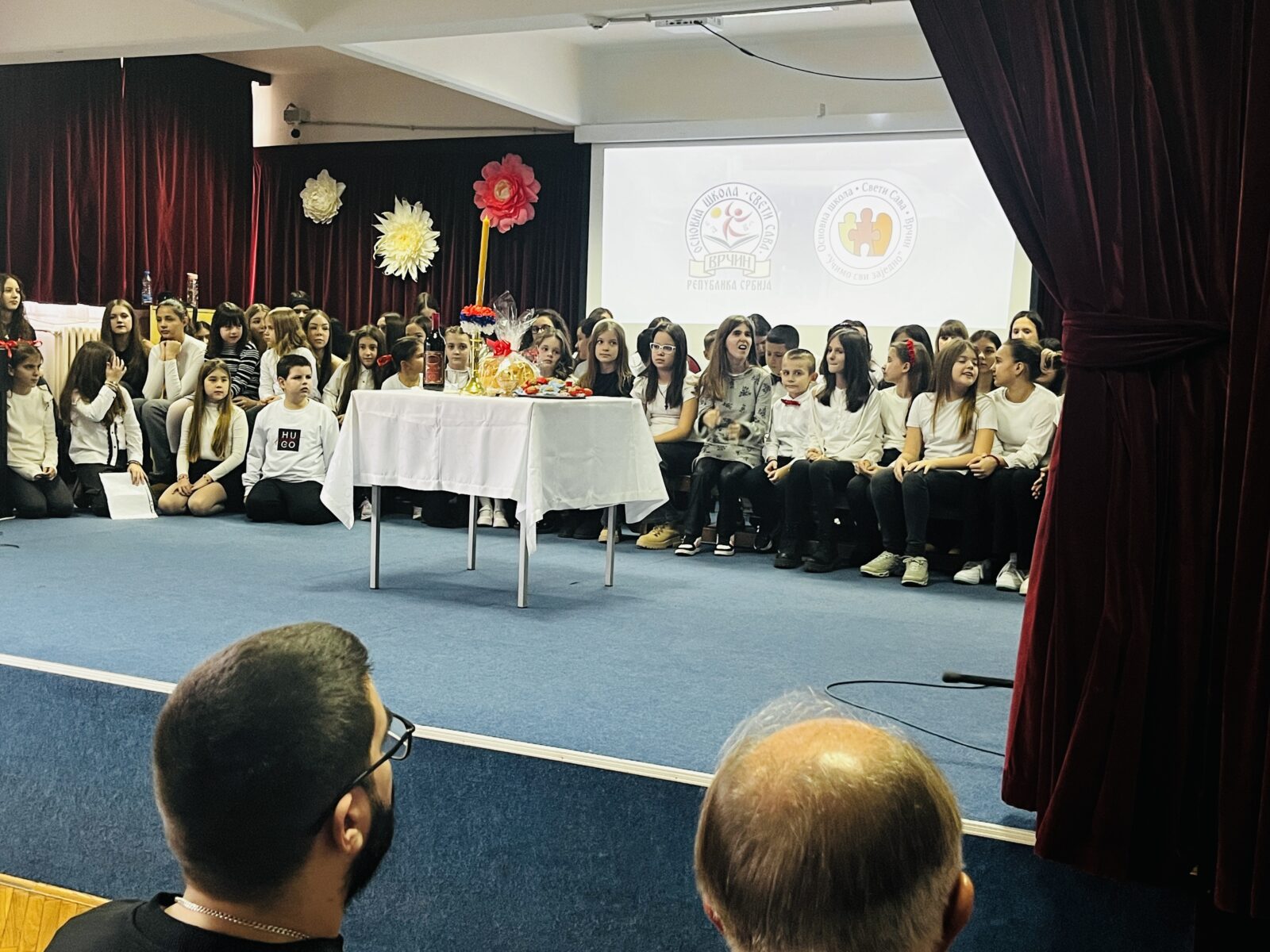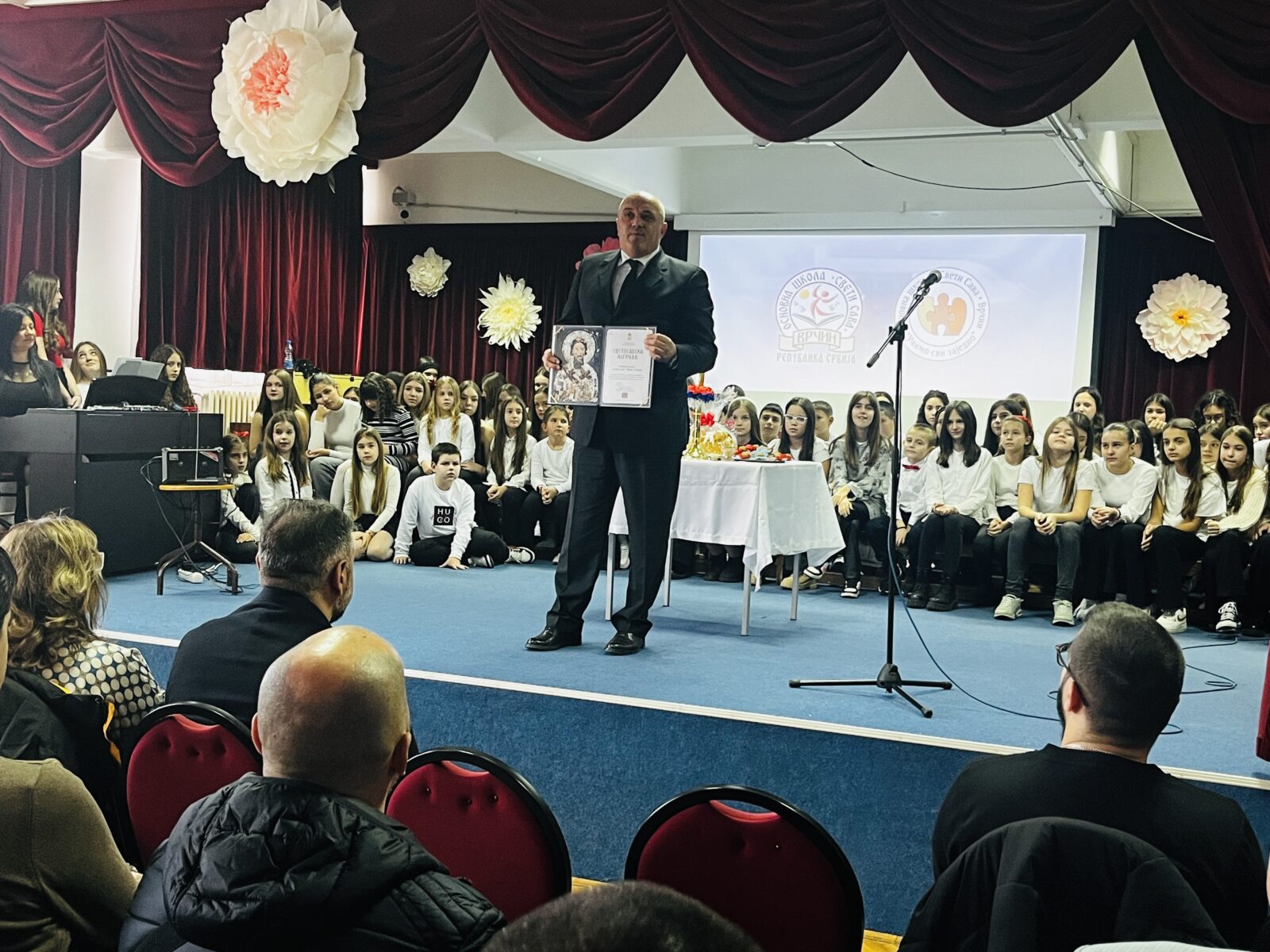 Светосавску приредбу смо, традиционално започели Химном Светом Сави и пројекцијом новог филма о школи https://os-svetisava.edu.rs/novi-film-o-skoli/ Достојни Савиног имена, ове године ми ђаци, запослени, родитељи наших ђака, пријатељи и сарадници школе, овенчани смо најзначајнијим образовним одличјем Светосавском наградом. О значају награде коју смо добили говорио је директор наше школе, Добрица Синђелић, који је наш неисцрпан извор идеја и мотивације, а који је и сигурни смо, срећан што има запослене довољно и храбре и одважне, али који на првом месту имају знање и ентузијазам да идеје спроведу у дело.