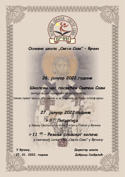 Огласна табла Школски час посвећен Светом Сави 26. јануар 2022. diyarbakır escort sitesi Post navigation Previous: Еразмус + пројекат „Живи здраво, храни се здраво“Next: Честитка директора
