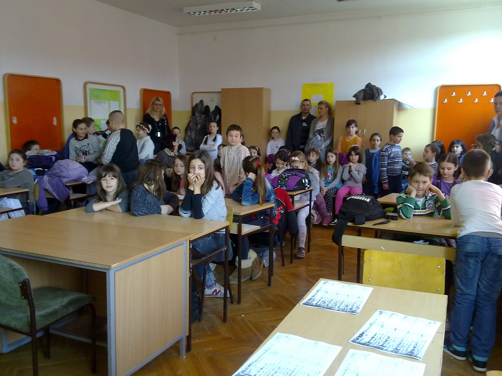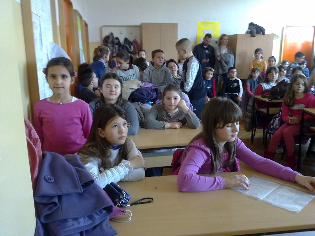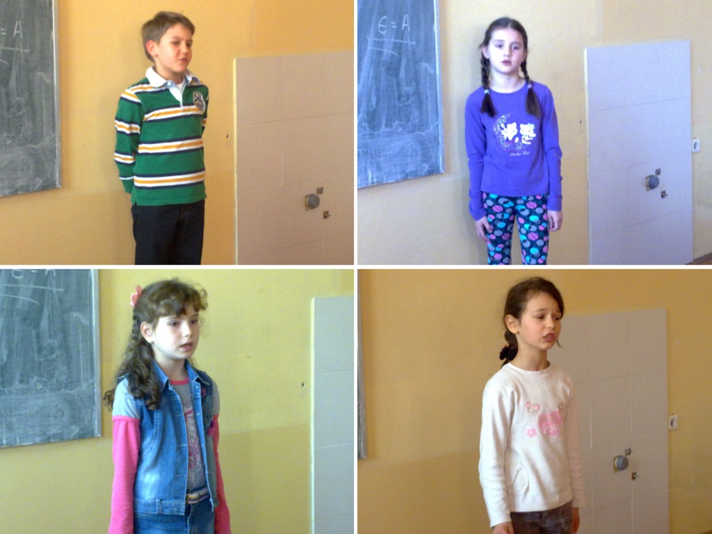 Школско такмичење у рецитовању за ученике од 1. до 4. разреда одржано је 26.02.2014. год. са почетком у 1300 часова. Чланове жирија чинили су: професорке српског језика, Радмила Станимировић и Сунчица Ђорђевић; школски психолог, Мирјана Терзић; библиотекарка, Снежана Теофиловић; секретар, Илинка Маринковић, и Јанко Ковачевић, председник Ученичког парламента наше школе и и прошлогодишњи победник општинског такмичења у рецитовању. Жири, више него стручан, за нешто мање од сат времена након завршеног такмичења, одлучио је о освојеним местима и даљем пласману на општинско такмичење. Такмичење је било отворено за јавност, па су тако нашим малим рецитаторима подршку пружали њихови најближи – маме, тате, браћа и сестре, као и другари који нису били учесници такмичења. Подршку рецитаторима пружале су и њихове одељењске старешине, које су биле у публици.