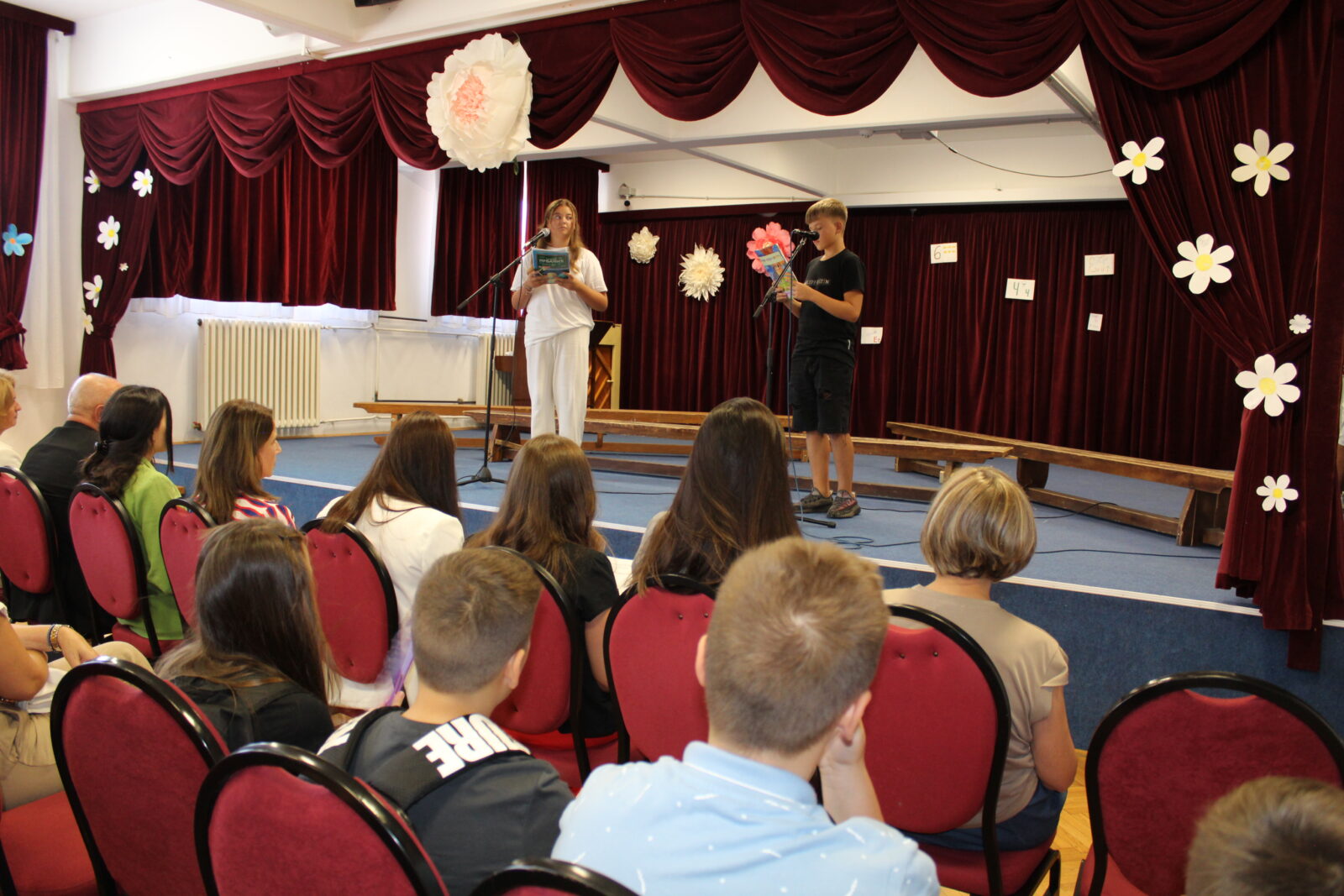 У нашој школи негујемо и развијамо позитивне људске вредности код ученика као и активности које доприносе унапређивању односа заснованих на међусобном поштовању, толеранцији, емпатији, сарадњи и солидарности; негујемо читалаштво и логичко разумевање прочитаног, спорт и здраве стилове живота, континуирано негујемо и развијамо безбедно и подстицајно окружење за учење и развој свих чланова школске заједнице. Будуће петаке наученим стиховима специјално за ову прилику поздравили су  Вукан Стојановић 7/3 и Вук Вагић 8/1, а кроз програм су нас водили Анђела Стојановић 8/2 и Петар Савић 7/3. Велику подршку у њиховој креативности пружа им наставница српског језика Слађана Вагић која их је и припремала за ову свечаност.