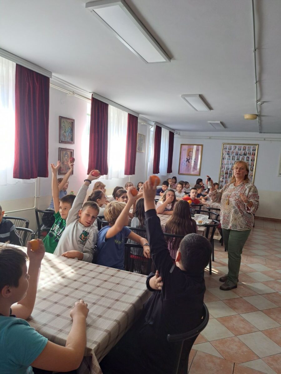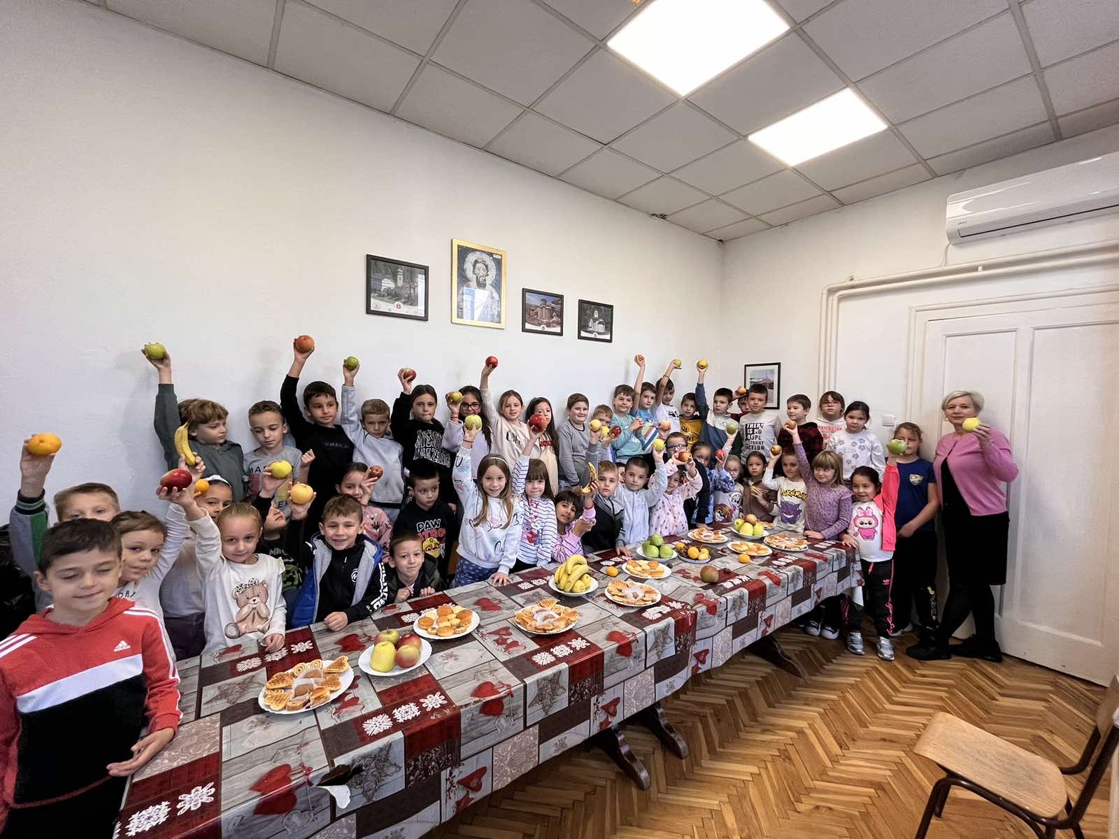 У сарадњи са наставницима и родитељима припремали су воћне салате. У школској трпезарији ученици одељења III/1 и IV/2 одржали су едукативну радионицу посвећену подизању свести о значају здраве исхране, посебно школске ужине. Том приликом ученици су имали прилику да сазнају шта су некада ђаци најчешће јели за ужину. Уз подршку родитеља умешен је домаћи хлеб, а уз помоћ наставника припремљене су традиционалне слане ужине – хлеб намазан машћу, посут сољу и алевом паприком, као и слатке варијанте посуте кристал шећером. Ученици су са великим интересовањем пробали старинске укусе и уживали у дружењу.